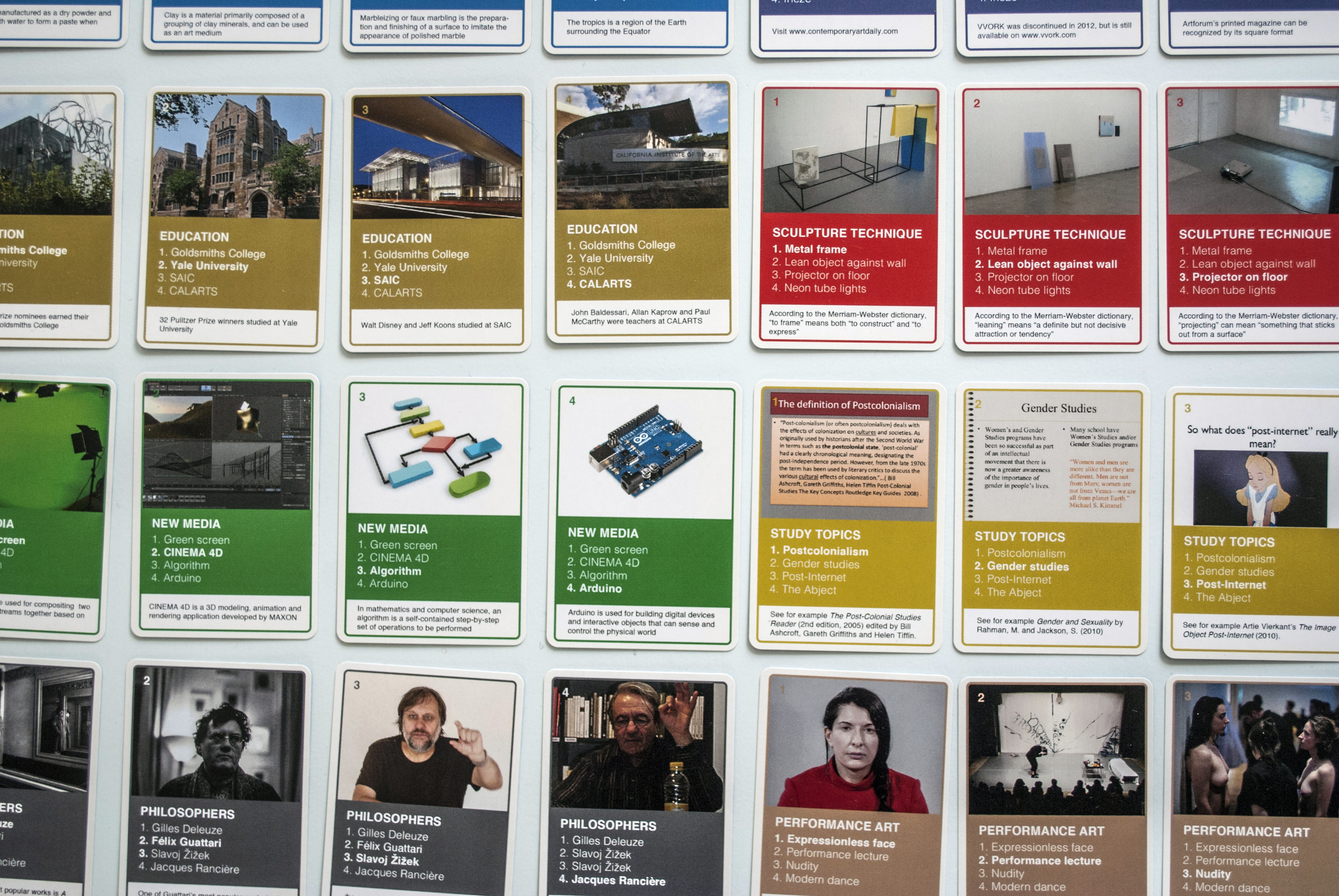 Quartet game see Wikipedia based on trends and unspoken rules in contemporary art. Out of the edition 140 were bought by the Gerrit Rietveld Academie as a gift to all teachers, to play at home.